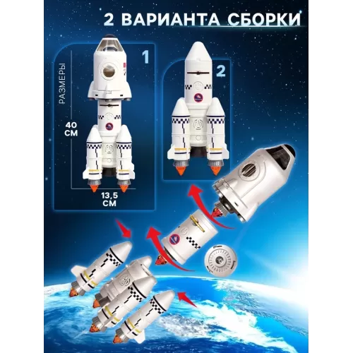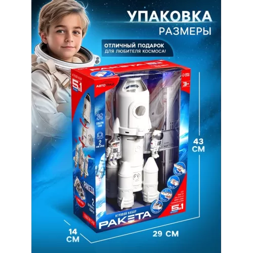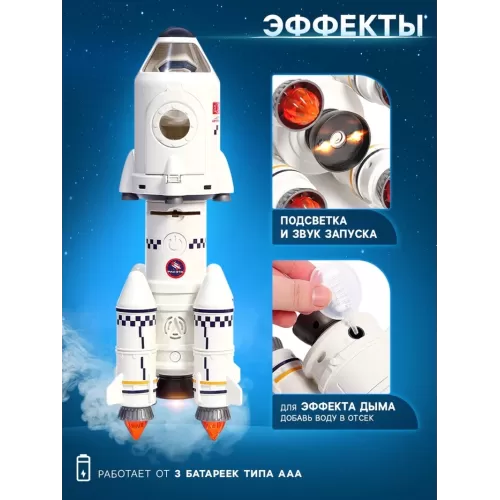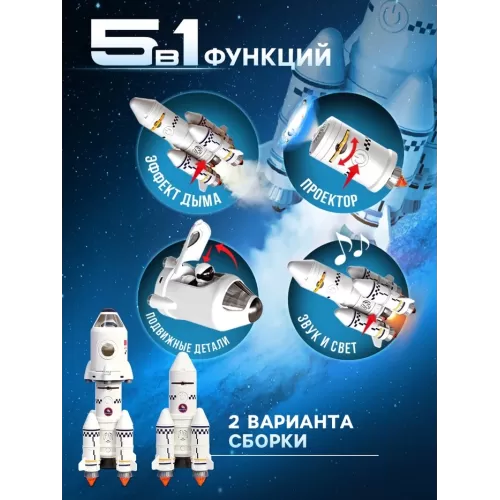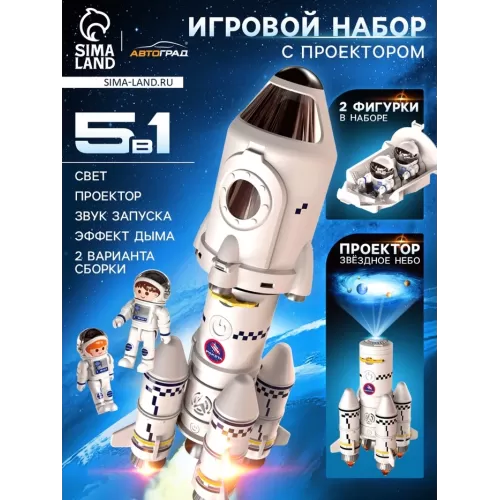 Игровой набор 5в1 «Ракета», свет, звук, дым, с проектором и фигурками