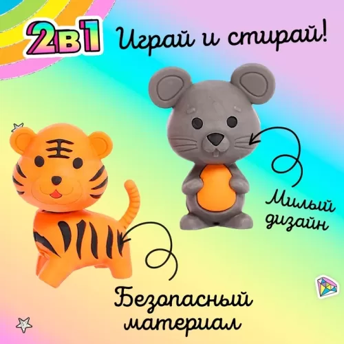 Игровой набор ластиков «Зверята», 6 шт., МИКС
