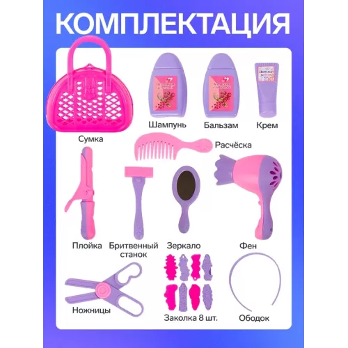 Игровой набор «Парикмахер» №3, 19 предметов, в сумочке