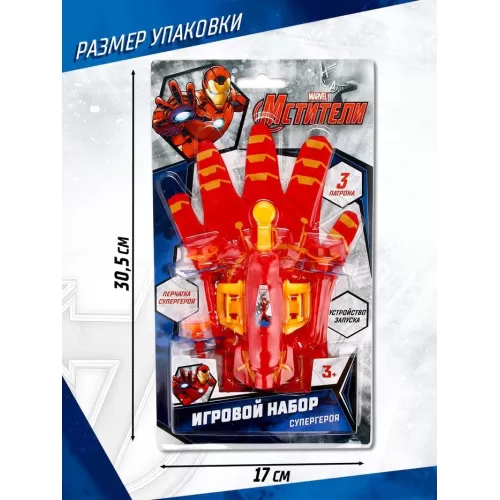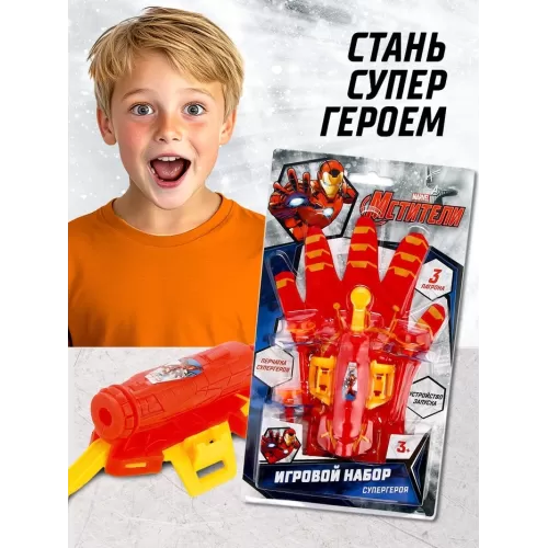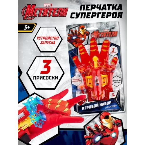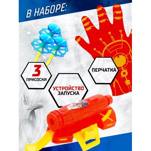 Игровой набор с перчаткой супергероя «Железный человек», стреляет присосками, 1 устройство запуска