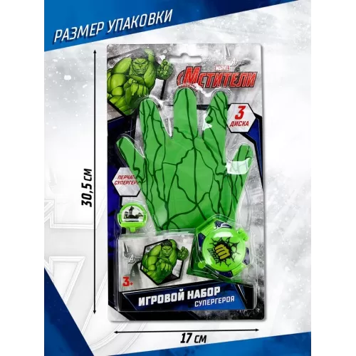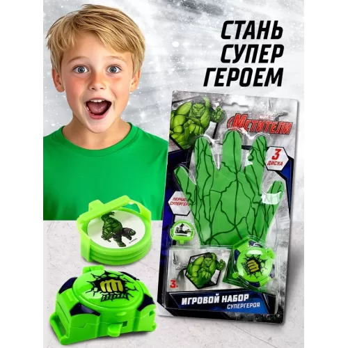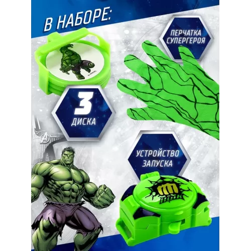 Игровой набор с перчаткой супергероя «Халк», стреляет дисками, 1 устройство запуска
