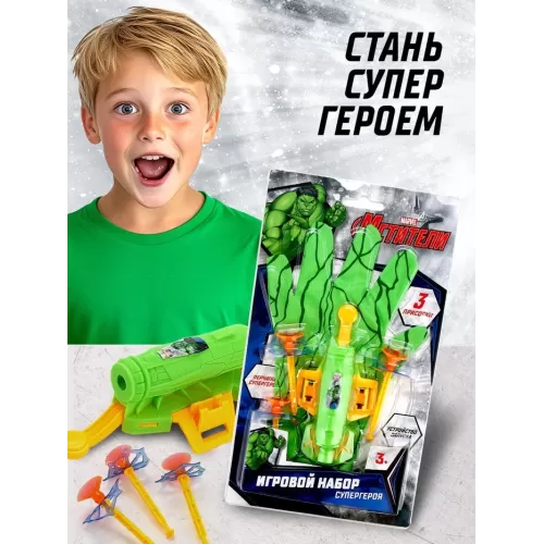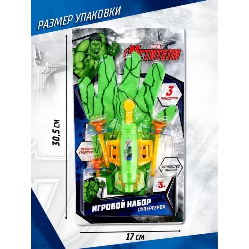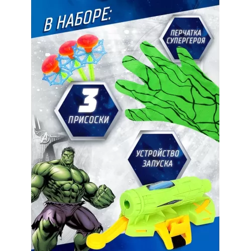 Игровой набор с перчаткой супергероя «Халк», стреляет присосками, 1 устройство запуска