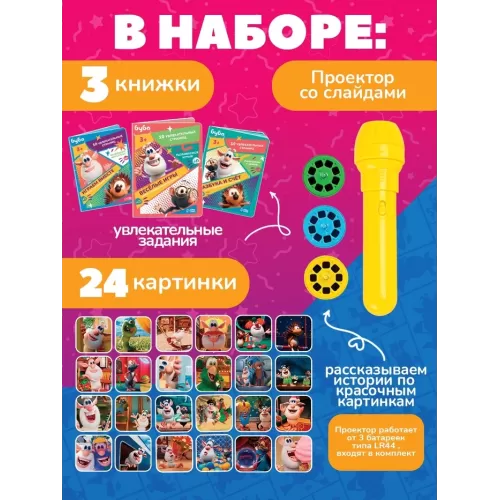 Игровой набор с проектором, 3 книжки, световые эффекты, Буба