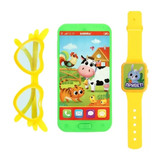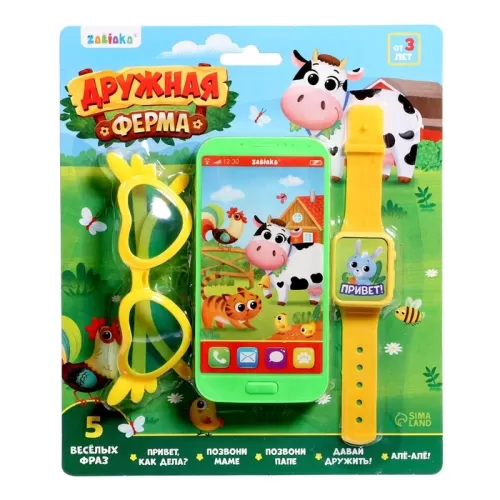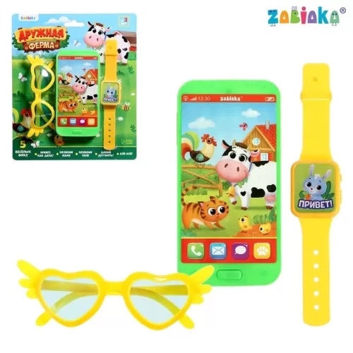 Игровой набор «Весёлая ферма»: детский телефон, очки, часы, русская озвучка, цвет зелёный