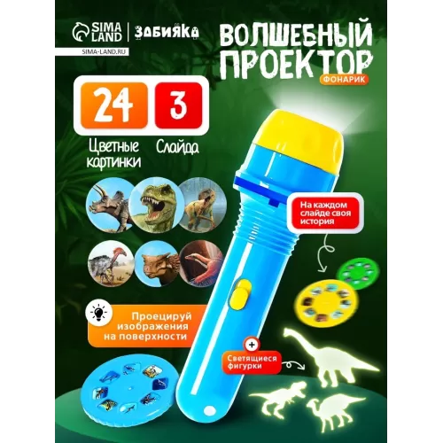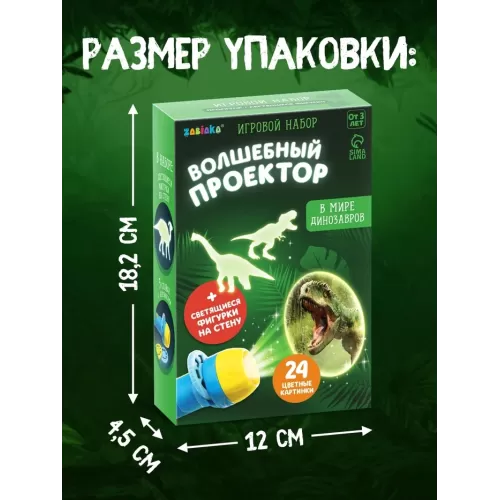 Игровой набор «Волшебный проектор: В мире динозавров», светящиеся наклейки, 3 слайда, 24 картинки