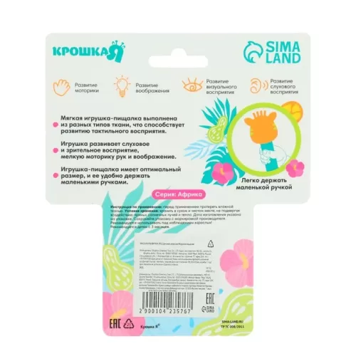 Игрушка - пищалка Крошка Я «Зебра» с погремушкой