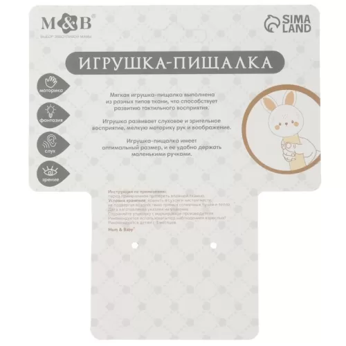 Игрушка - пищалка M&B «Новогодний зайка», бежевый