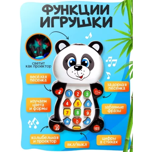 Игрушка музыкальная обучающая «Панда», с проектором, работает от батареек