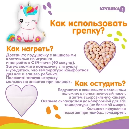 Игрушка грелка с вишневыми косточками Крошка Я «Единорог», от 3 мес.