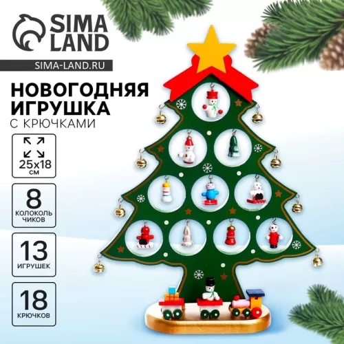 Игрушка с крючками «Новый год! Ёлочка», 13 игрушек, 8 колокольчиков
