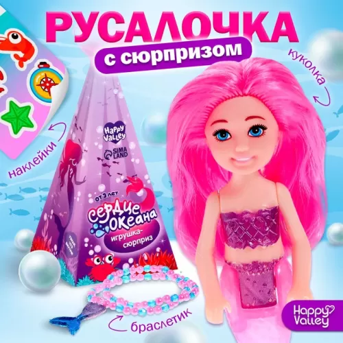 Игрушка-сюрприз «Сердце океана», кукла с кулоном и наклейками, МИКС