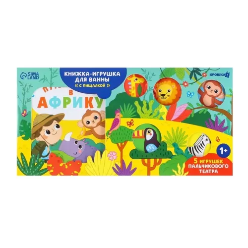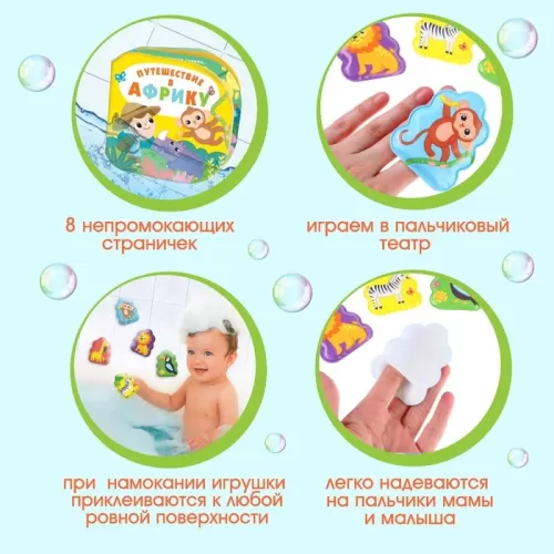 Игрушки для ванны Крошка Я «Путешествие в Африку» книжка и пальчиковый театр, от 1 года