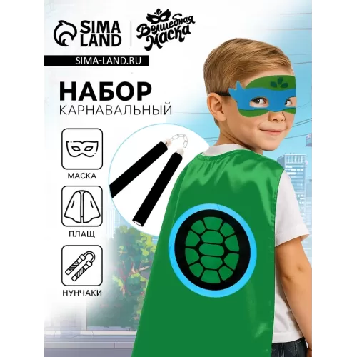 Карнавальный костюм «Боевая черепашка», в наборе 3 предмета: плащ, маска и нунчаки