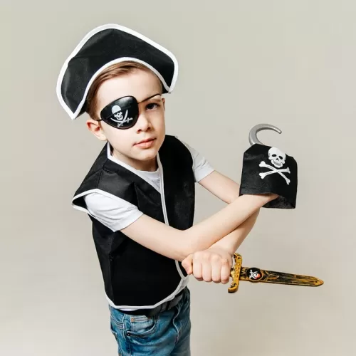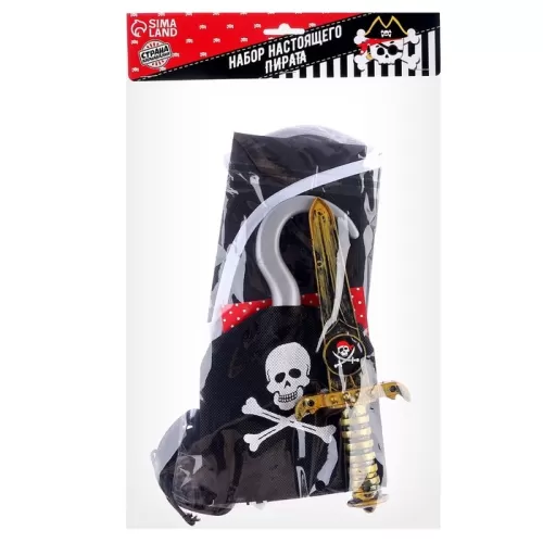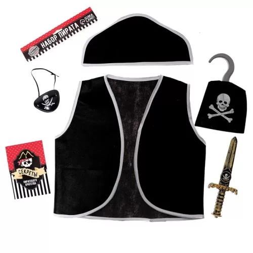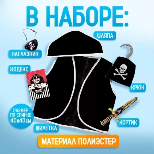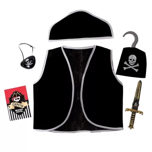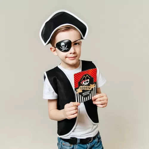 Карнавальный костюм «Пират», 6 предметов: шляпа, жилетка, наглазник, кортик, крюк, кодекс