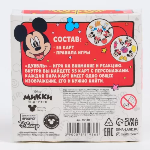 Карточная игра на скорость и реакцию «Дуббль», 55 карт, 5+, Микки Маус и его друзья