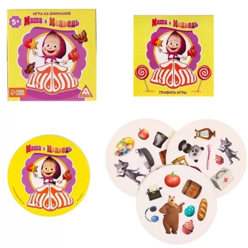 Карточная игра на скорость и реакцию «Дуббль. Смотри-хватай», 55 карт, 5+, Маша и Медведь