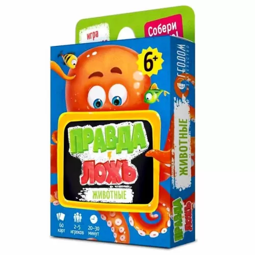 Карточная игра «Правда-ложь. Животные», 60 карточек