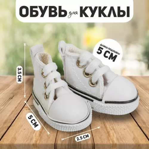 Кеды для кукол, длина подошвы 5.3 см, белые