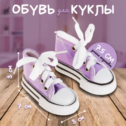 Кеды для кукол, длина подошвы 7.5 см, фиолетовые