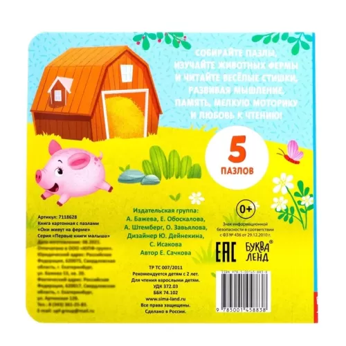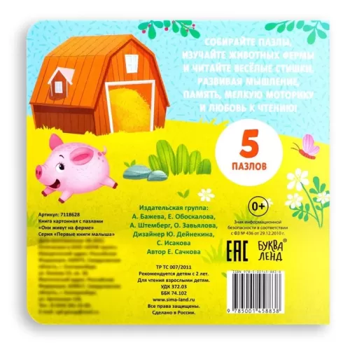 Книга картонная «Они живут на ферме», 12 стр., с пазлами 5 шт.