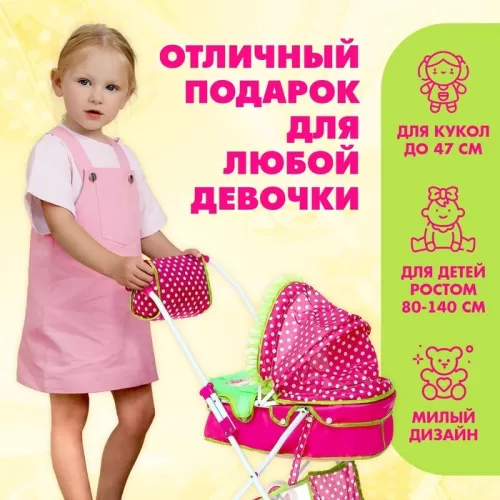Коляска для кукол «Счастливый карапуз» универсальная, с корзиной и сумкой