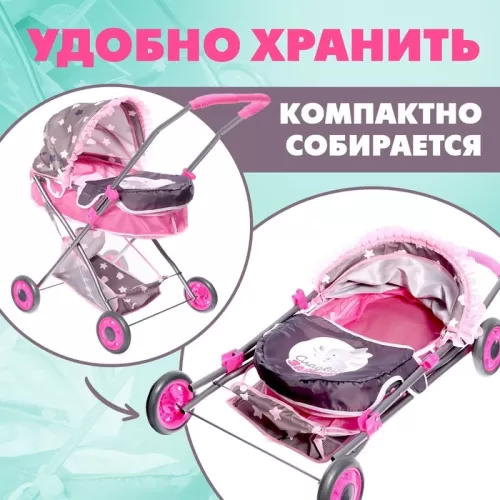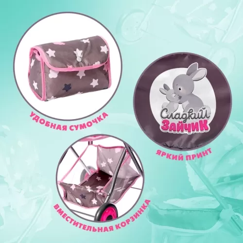 Коляска для кукол «Сладкий зайчик» универсальная, с корзиной и сумкой