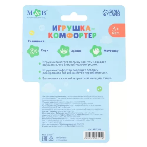 Комфортер - игрушка для сна новорожденных, M&B «Мишка», погремушка, голубой