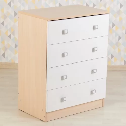 Комод c 4 ящиками Polini kids Simple, 604×380×792 мм, дуб пастельный-белый