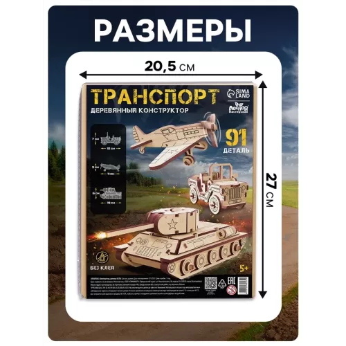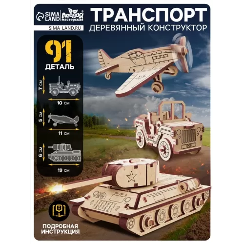 Конструктор 3D модель «Военный транспорт», 91 деталь, деревянный