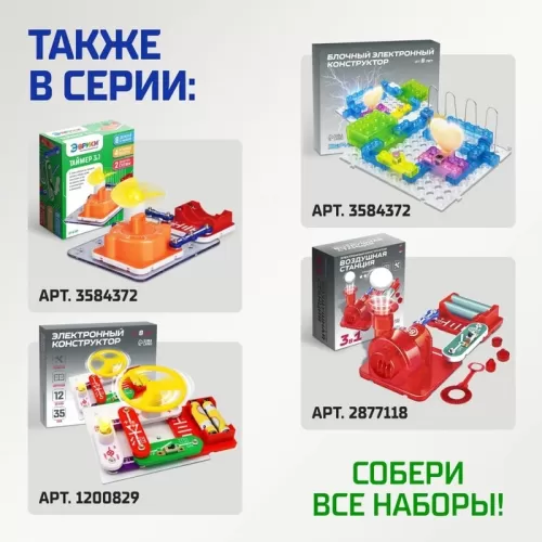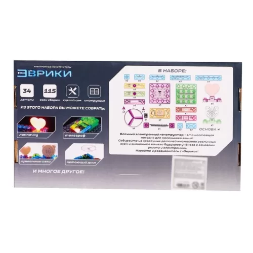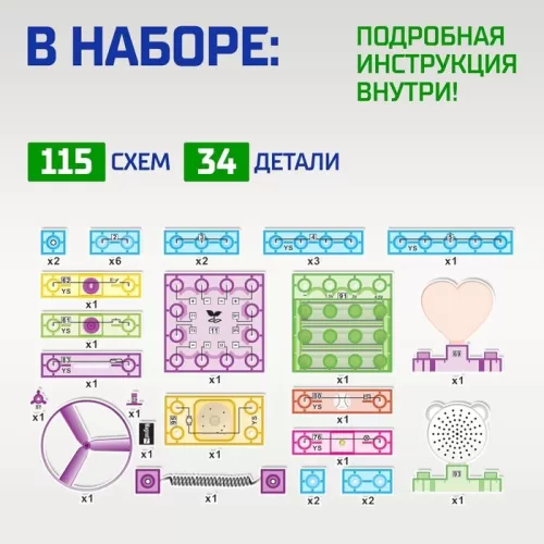 Конструктор блочный-электронный «В мире электроники», 115 схем, 34 детали