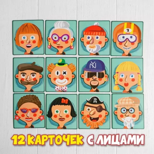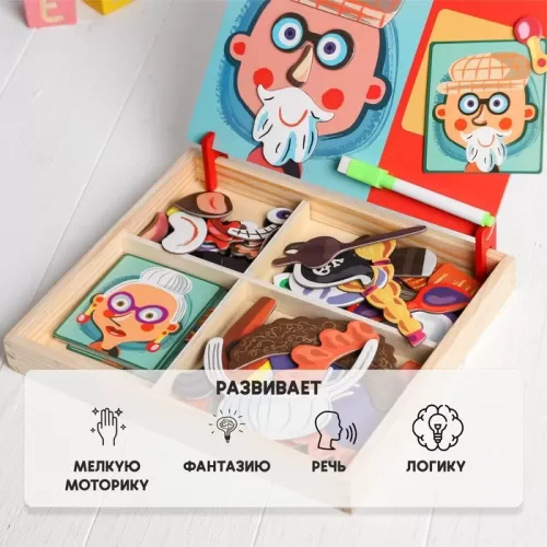 Конструктор магнитный «Весёлые рожицы»: карточки, маркер, магнитные элементы
