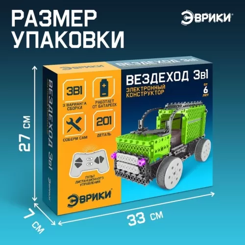 Конструктор радиоуправляемый «Вездеход», 3 в 1, 201 деталь