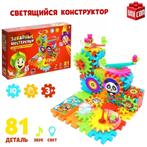 Конструктор «Забавные шестерёнки», световые и звуковые эффекты, работает от батареек, 81 деталь