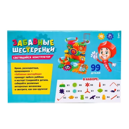 Конструктор «Забавные шестерёнки», световые и звуковые эффекты, работает от батареек, 99 деталей