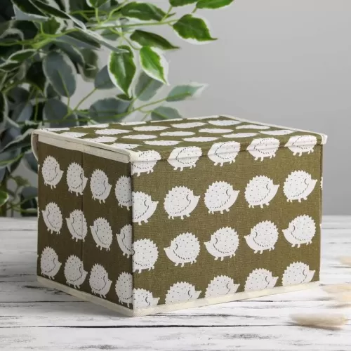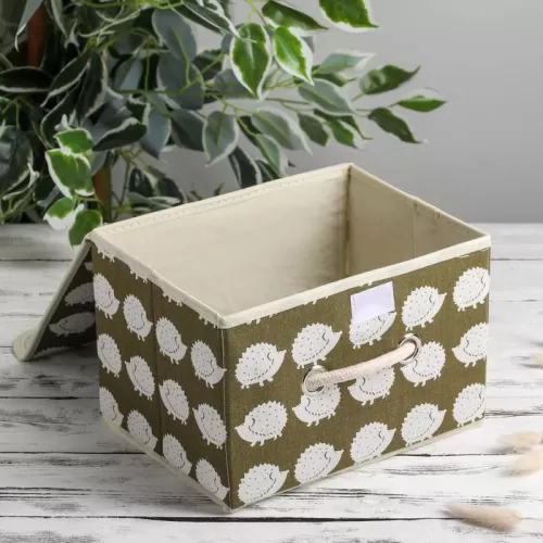 Короб стеллажный для хранения с крышкой «Ёжики», 25×20×17 см, зелёный