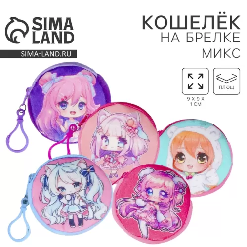 Кошелёк детский «Аниме», плюшевый, МИКС