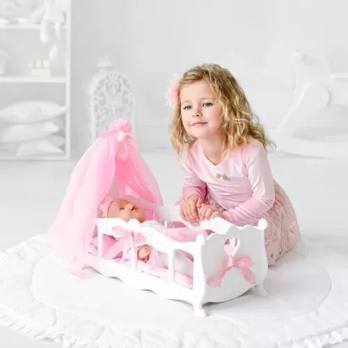 Кроватка для кукол с постельным бельем и балдахином, коллекция «Diamond princess» белый