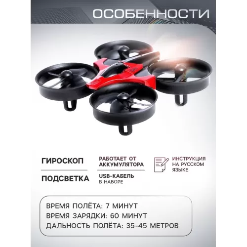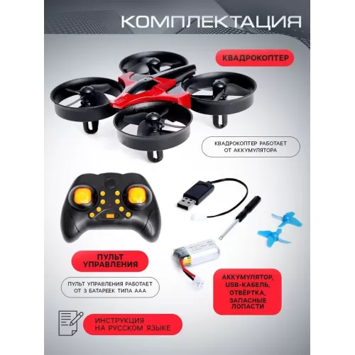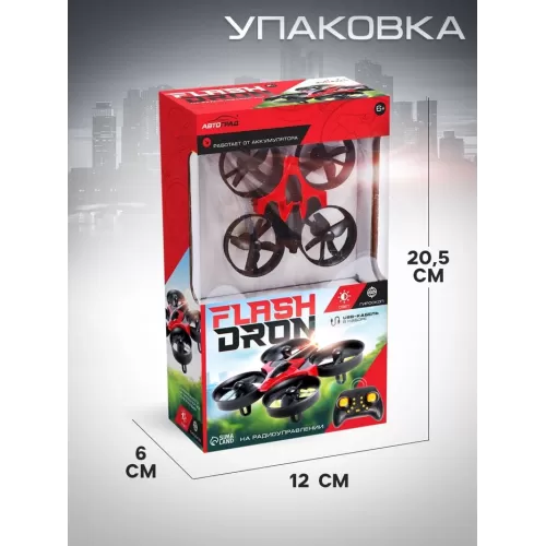 Квадрокоптер радиоуправляемый Flashdrone, работает от аккумулятора, цвет красный