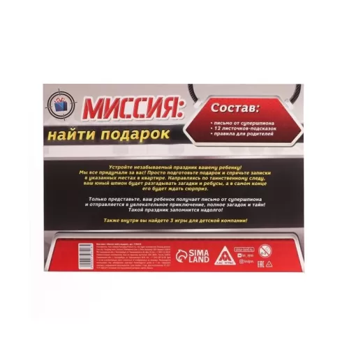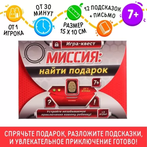 Квест-игра по поиску подарка «Миссия: найти подарок», 12 подсказок, письмо, 7+