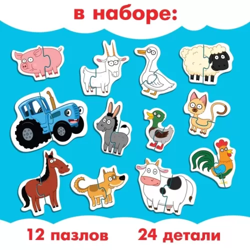 Магнитные макси-пазлы «Синий трактор на ферме», в металлической коробке