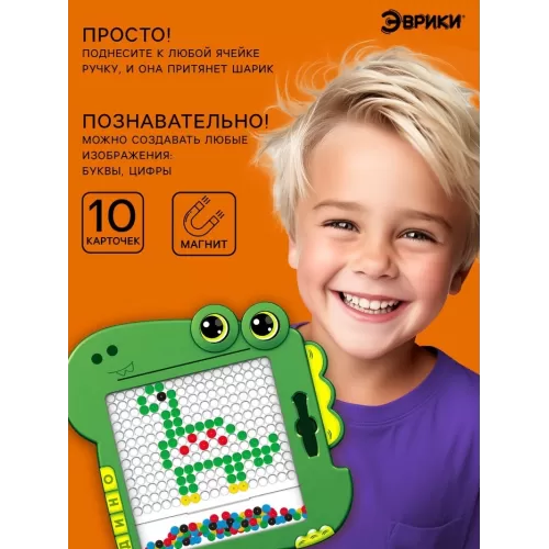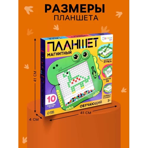 Магнитный планшет для рисования «Динозаврик», мозаика, 10 карточек