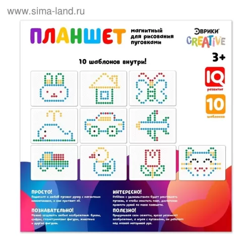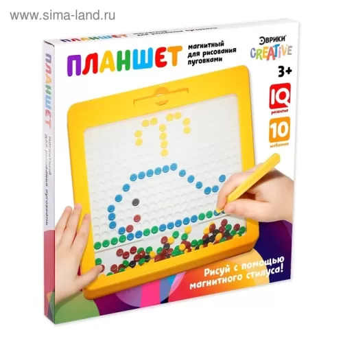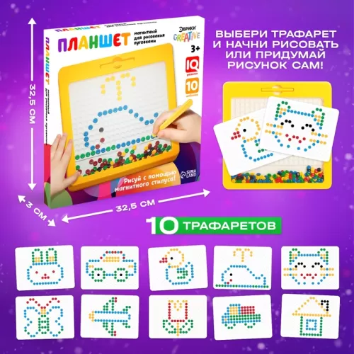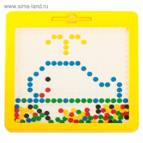Магнитный планшет для рисования «Пуговки», большой, 10 трафаретов, 266 ячеек, 126 пуговок