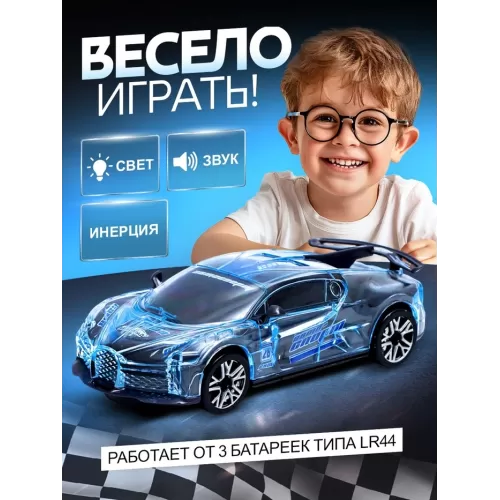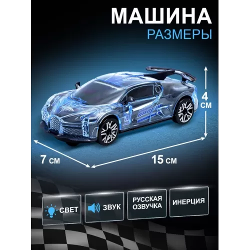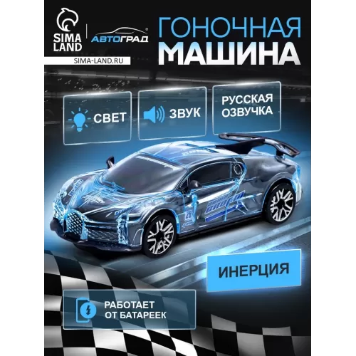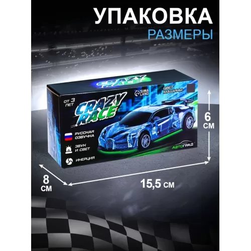 Машина инерционная Crazy race «Гонки», русская озвучка, свет, цвет серый