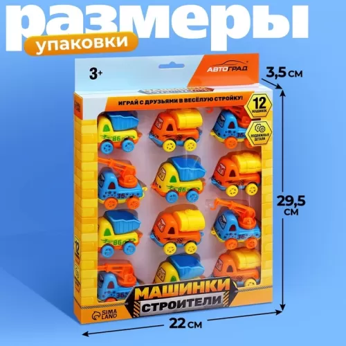 Машинки детские «Строители», набор 12 шт., подвижные детали