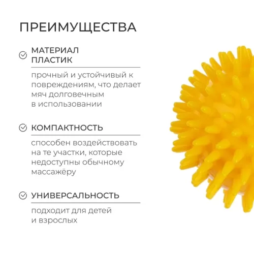 Массажёр «Ёжик», d=7.5 см, 55 г, жёлтый