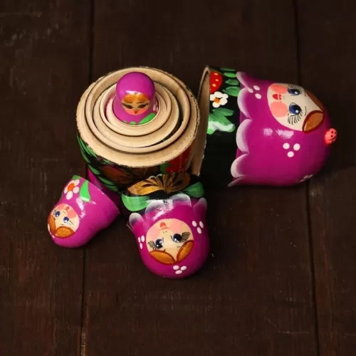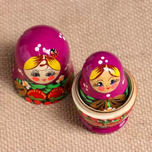 Матрёшка дерево «Божья коровка», фиолетовый платок, 5 кукольная, 9-11 см