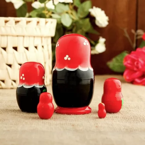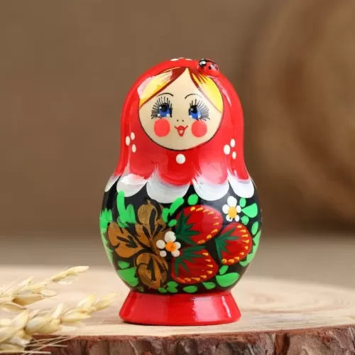Матрёшка дерево «Божья коровка», красный платок, 5 кукольная, 9-11 см