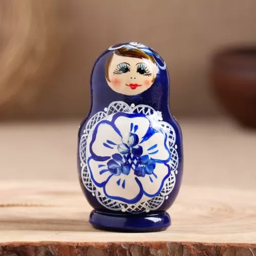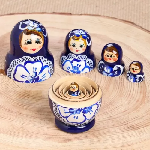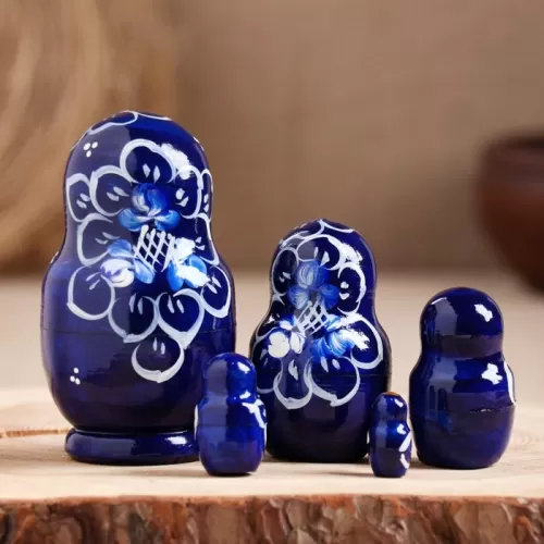 Матрёшка дерево «Гжель», синее платье, 5 кукольная, 9.5-11 см