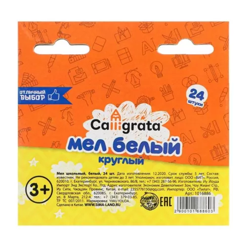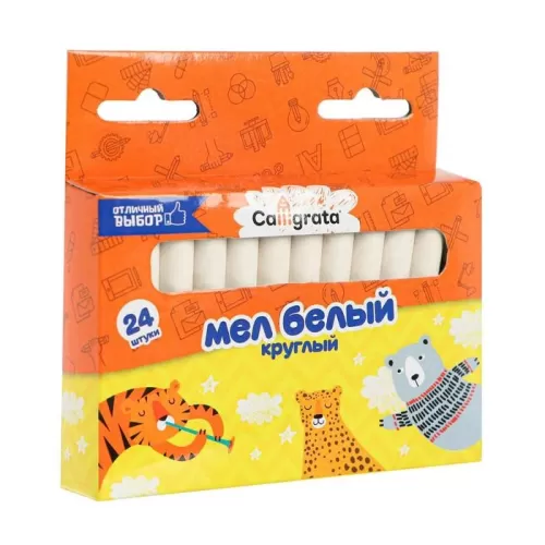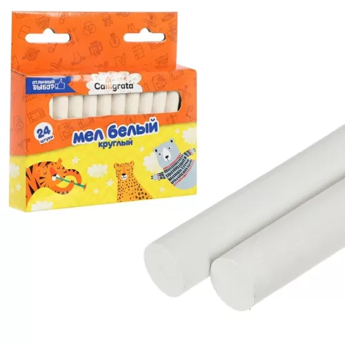 Мел школьный белый, набор 24 штуки круглый беспыльный, в картонной коробке