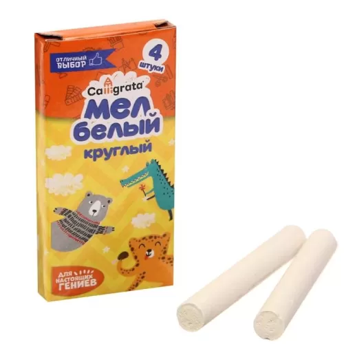 Мел школьный белый набор 4 штуки, круглый беспыльный, в картонной коробке